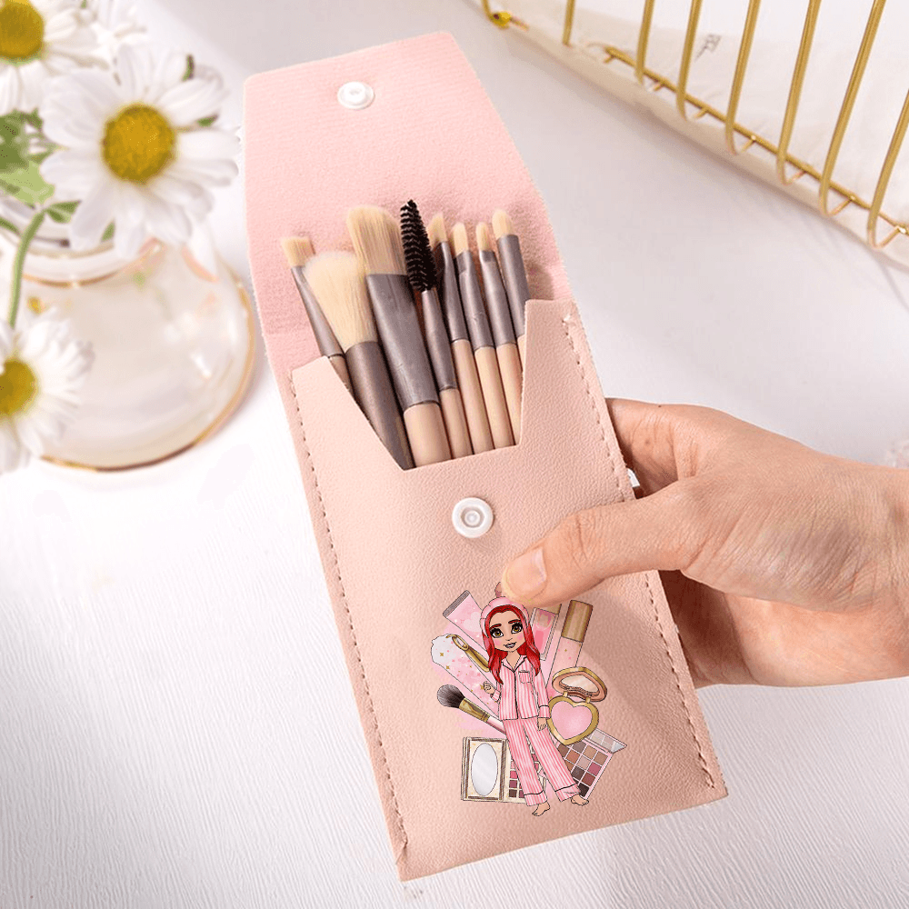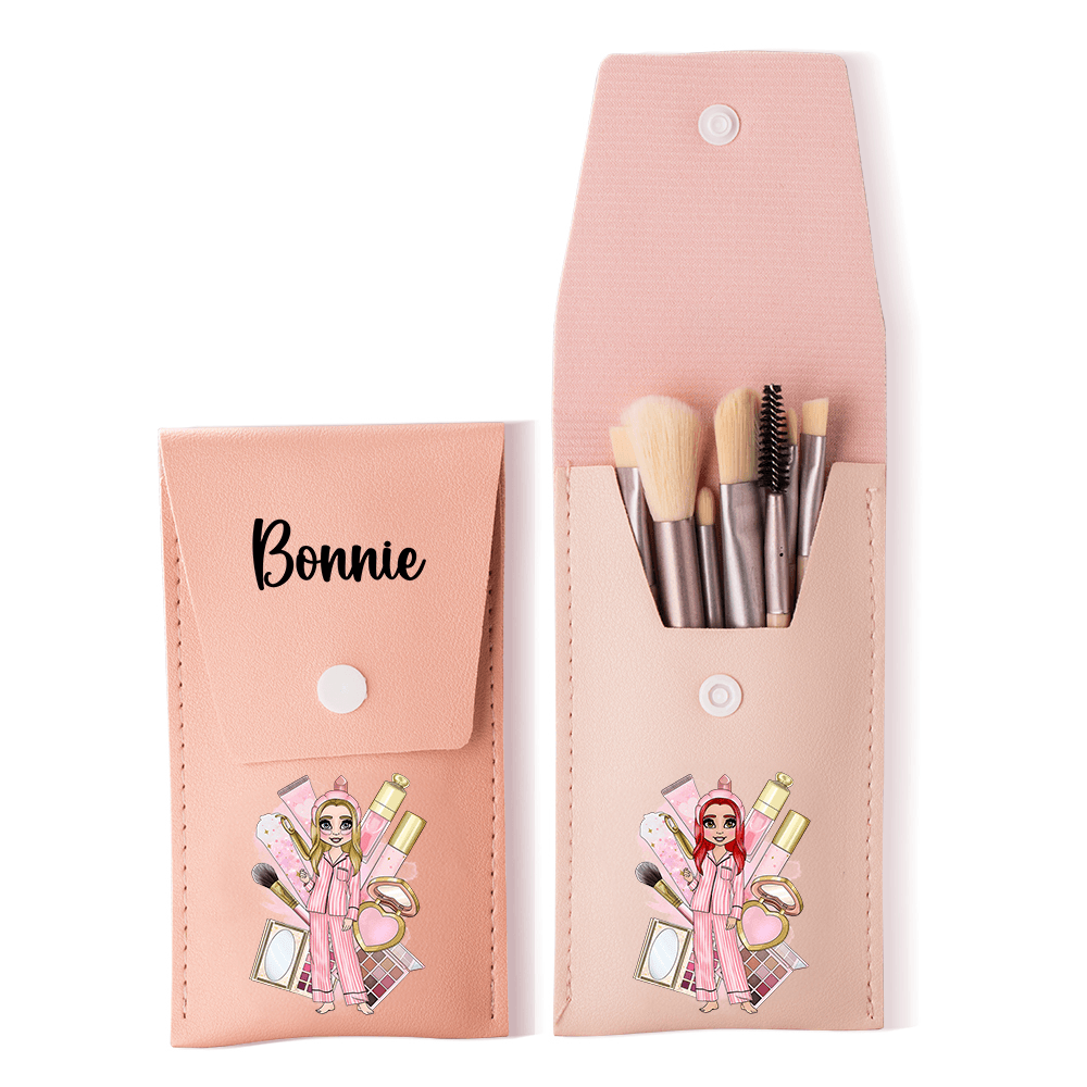 | Style | Personalized Pajama Party Girl Clipart Makeup Bag with 8 Makeup Brushes |